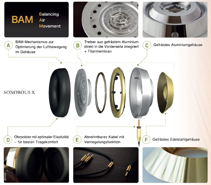 Aus der persönlicher Erfahrung rate ich abschließend dazu, dem Sonorous X sehr gute Extra-Kabel aus hochreinem Kupfer zu spendieren (zum Beispiel von Moon Audio oder ALO). Mit den entsprechend konfektionierten Steckern kann man sie problemlos am Kopfhörer befestigen. Das Klangbild wird dadurch etwas luftiger, die Höhen erhalten mehr Strahlkraft und die Tiefen noch mehr Druck und Präzision. Auch lohnt es sich für einen optimalen Klang, die Treibereinheit ungefähr 200 Stunden lang einbrennen zu lassen.