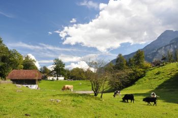 Wie erfinderisch die Bauern sind, um die Landwirtschaft am Leben zu erhalten, zeigt das Beispiel der Bergbauernfamilie Alois und Susanne Ming, den freundlichen Gastgebern. Sie bewirtschaften einen Bio-Betrieb von 12 Hektaren mit 13 Kühen, 14 Stück Jungvieh, 5 Muttersauen, einem Eber, Hund, Katzen, Enten und Hühnern. Typisch für das Bergdorf Lungern sind die 3-Stufen-Betriebe, das heisst Heimbetrieb, Berggut und Alp. Heimbetrieb und Berggut liegen in Bergzone 2 und 3, auf 750-900 m ü.M. Die Parzellen auf dem Heimbetrieb liegen weit auseinander, so dass diese Betriebsform sehr arbeitsintensiv ist.