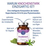 Für Knochen, die Stärke und Elastizität vereinen: Knochenstark liefert Kalzium, Magnesium, veganes D3 und K2, ergänzt durch Provitamin A und weitere essentielle Cofaktoren.